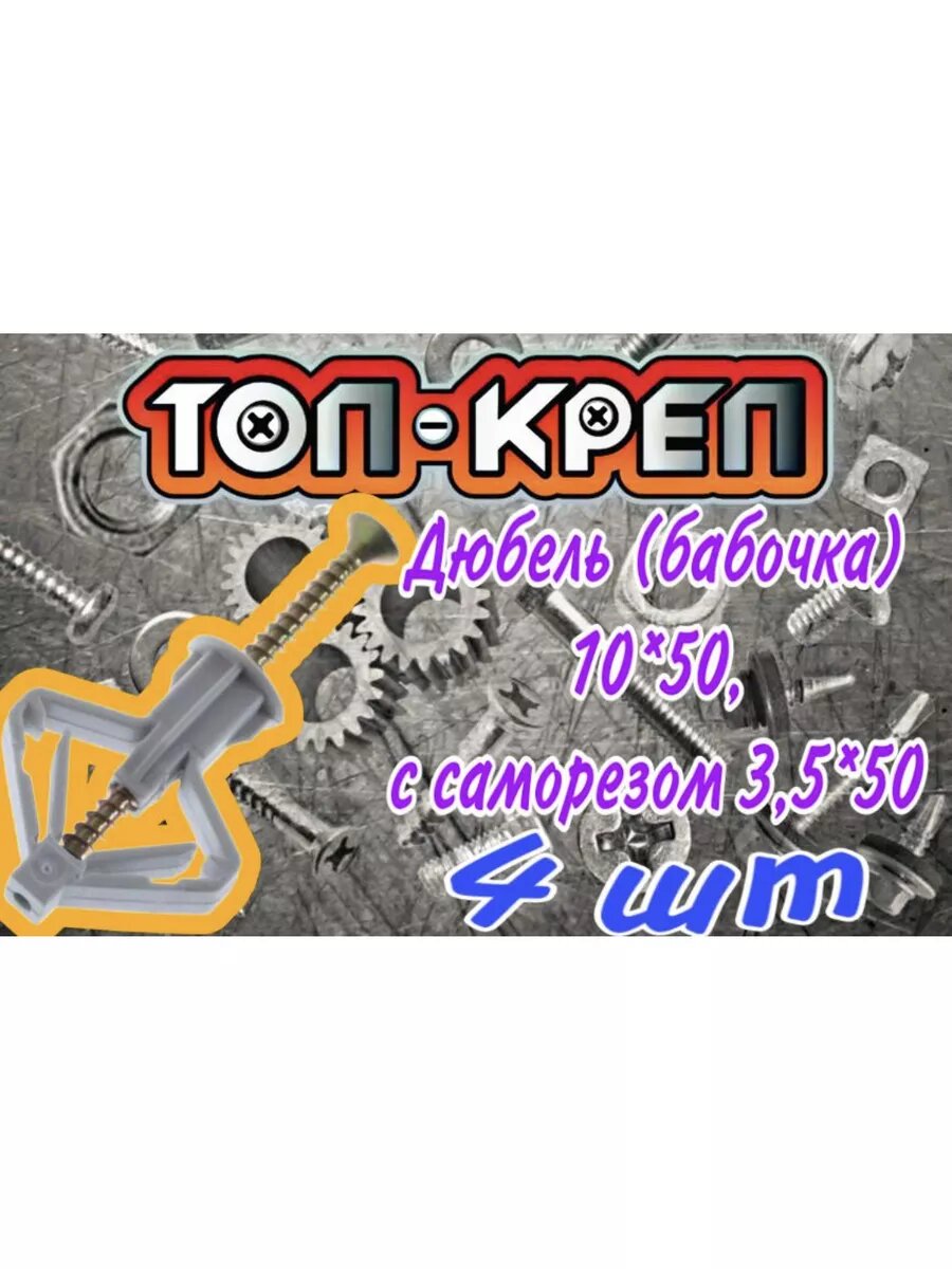 Дюбель-бабочка с саморезом ТОП-КРЕП, для гипсокартона, в упак. 4 шт интересное: