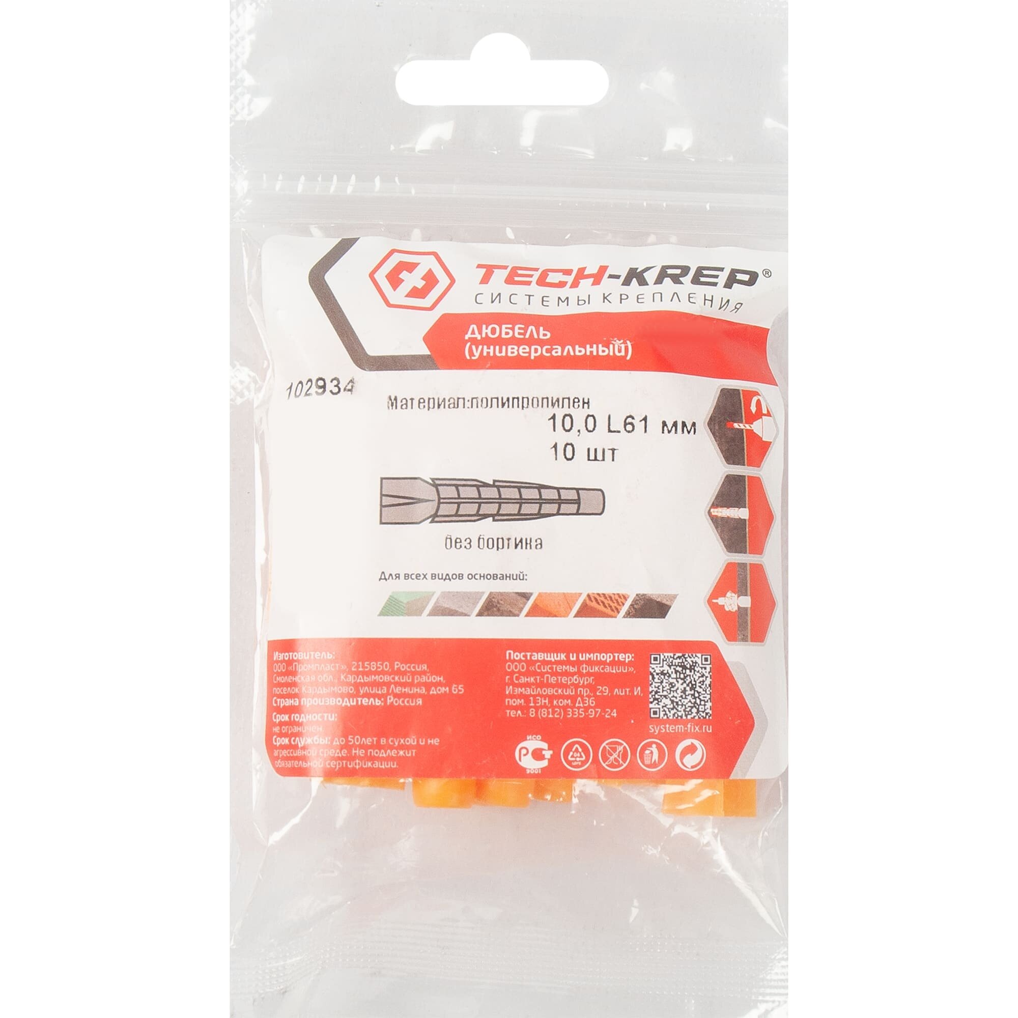Дюбель универсальный Tech-krep Zum 10x61 мм полипропиленовый оранжевый 10 шт. интересное: