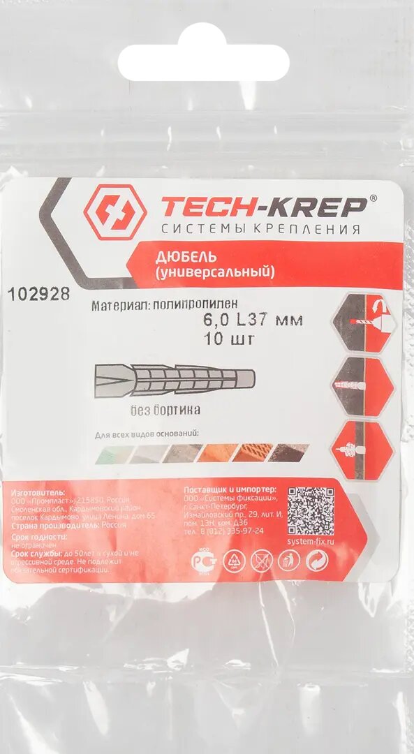 Дюбель универсальный Tech-krep Zum 6x37 мм полипропиленовый оранжевый 10 шт. интересное: