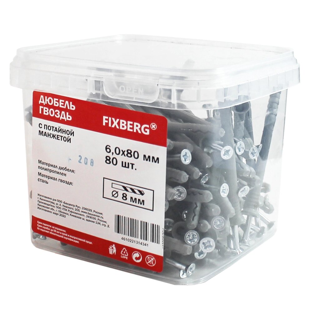 Ниже Вы можете прочитать отзывы на Дюбель-гвоздь с потайной манжетой FIXBERG 6х80 мм 80 шт, ознакомится с подробными характеристиками, посмотреть интересные обзоры и фотографии на Дюбель-гвоздь с потайной манжетой FIXBERG 6х80 мм 80 шт.