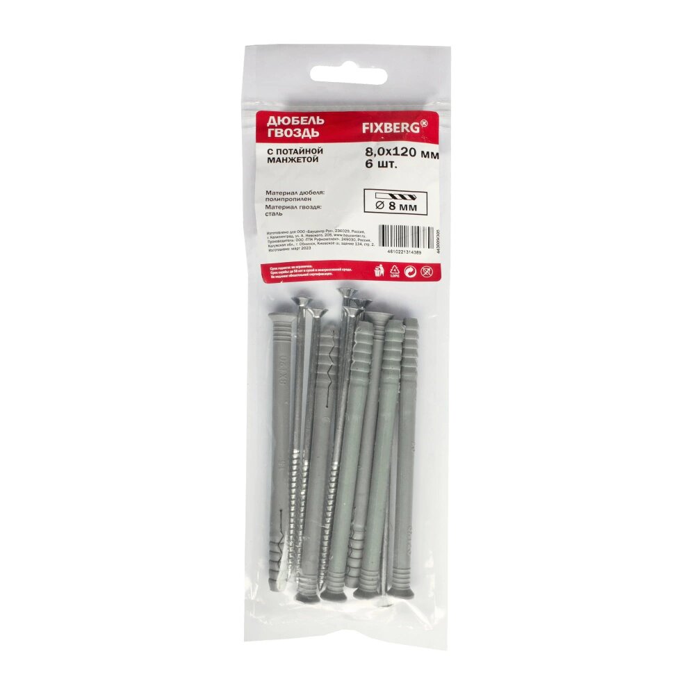Дюбель-гвоздь с потайной манжетой FIXBERG 8х120 мм 6 шт интересное:
