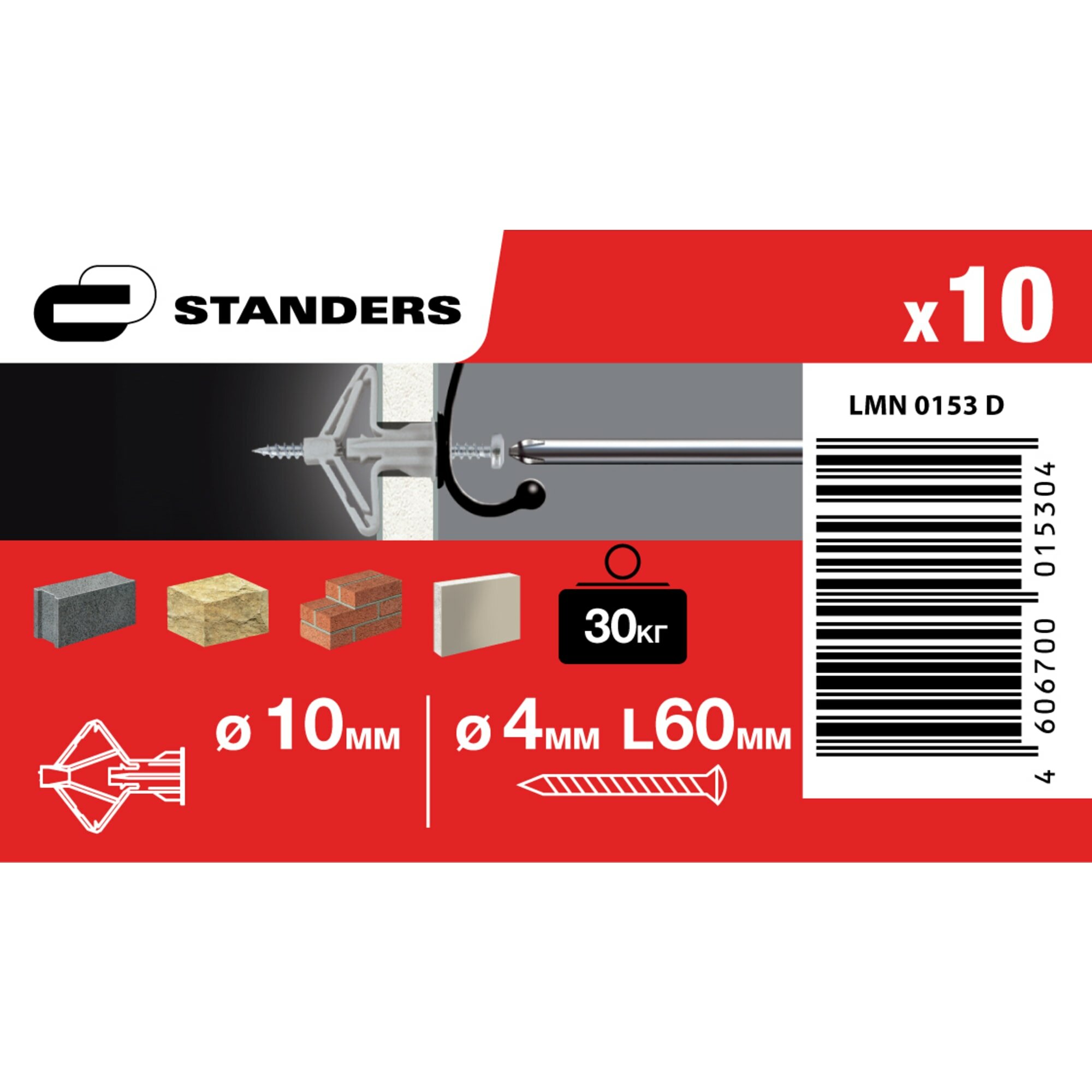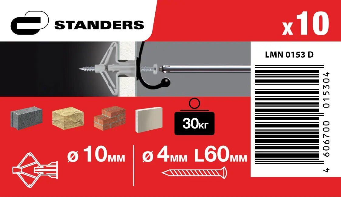 Дюбель Standers PLA D 10 с шурупом 4x60 мм, 10 шт. интересное: