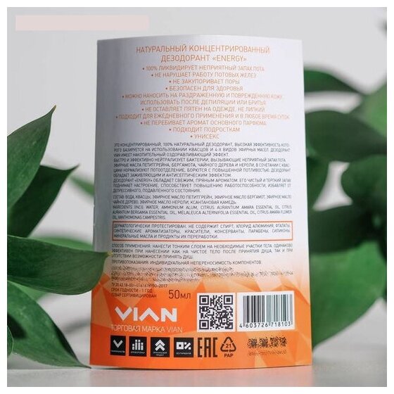 Дезодорант натуральный Vian STRONG, концентрированный, 50 мл