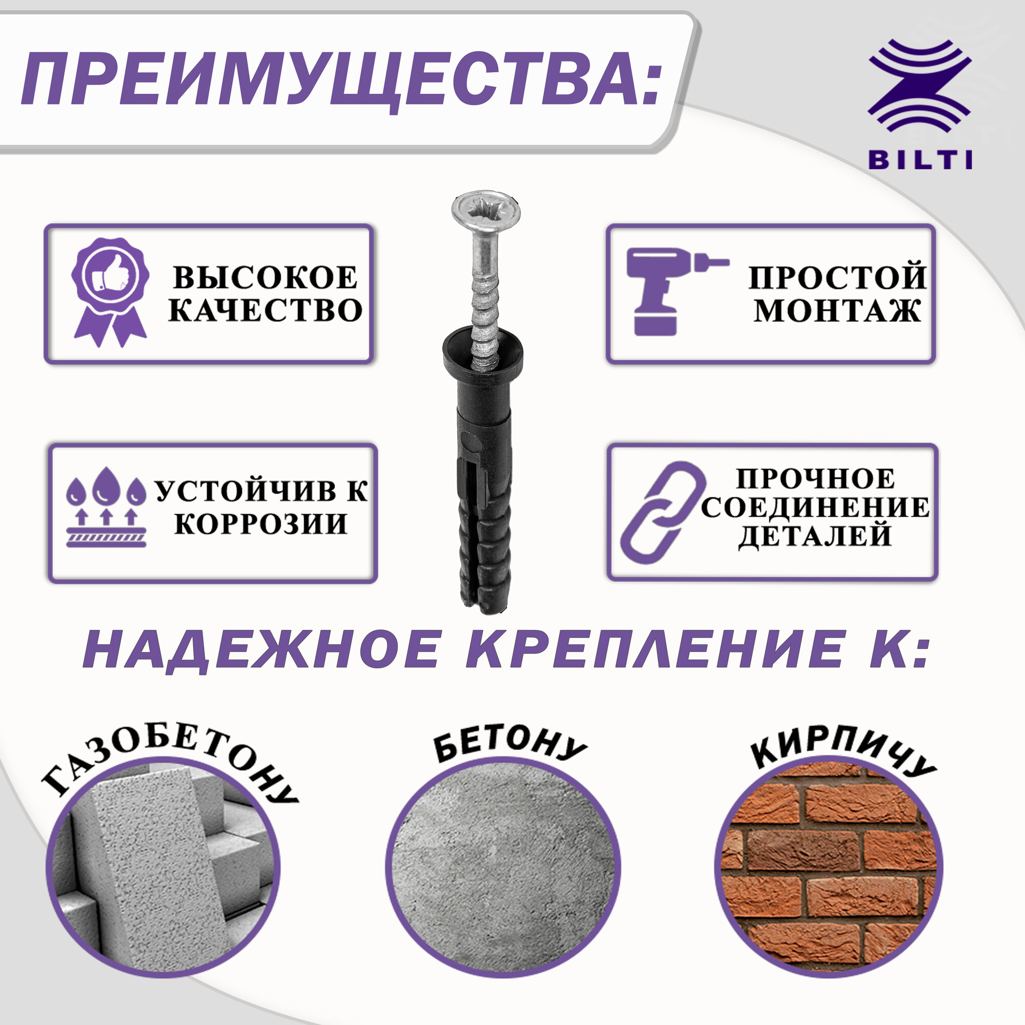 СохранитьДюбель-гвоздь "потайной" Bilti, полипропилен, 10x120мм (50шт) интересное: