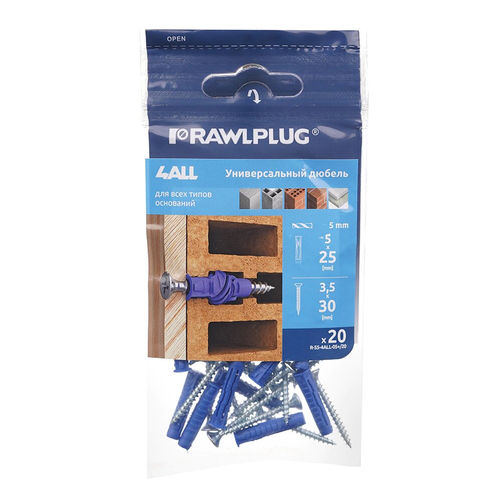 Купить Дюбель универсальный Rawlplug 4ALL 5х25 мм с шурупом 3,5х30 мм 20 шт