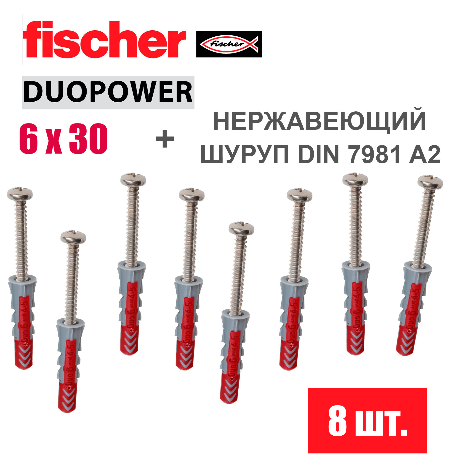 Дюбель универсальный Fischer DUOPOWER 6x30 / Шуруп нержавейка, 8 шт. интересное: