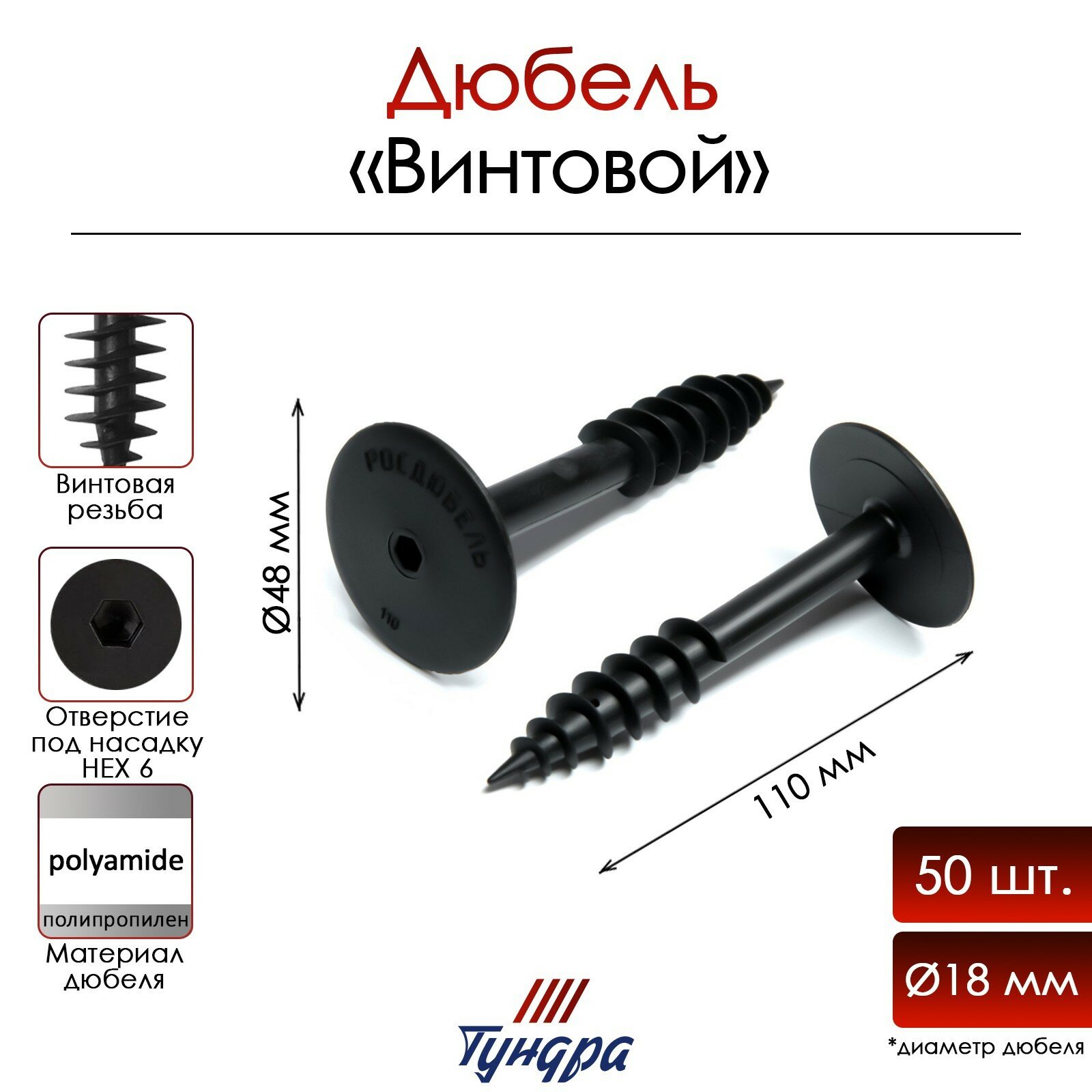 Дюбель тундра, для теплоизоляции, винтовой, 18х110 мм, 50 шт, 9694704 интересное: