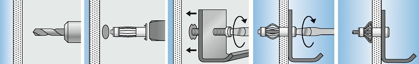 Дюбель Молли 5х52 мм металлический для гипсокартона с крюком, 4 шт, оцинкованный