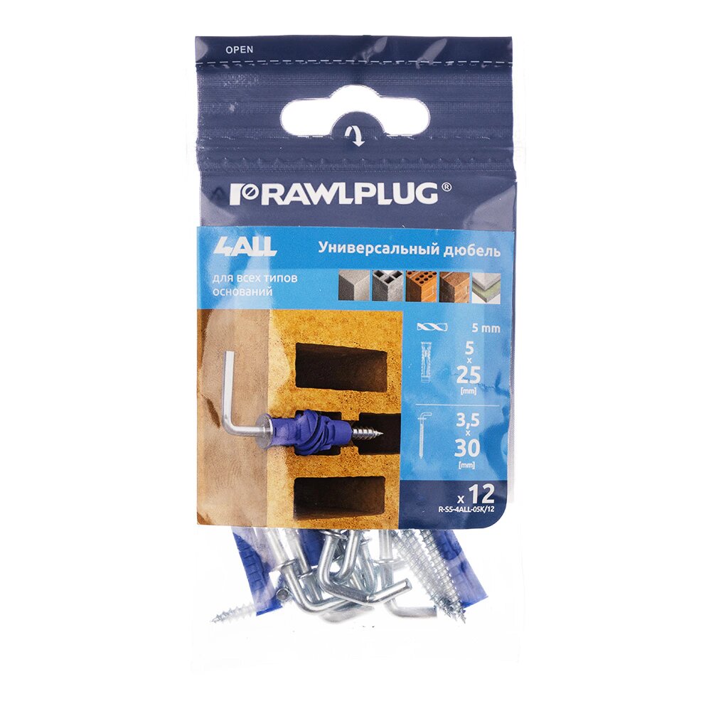 Купить Дюбель универсальный Rawlplug 4ALL 5х25 мм с Г-крюком 3,5х42 мм 12 шт