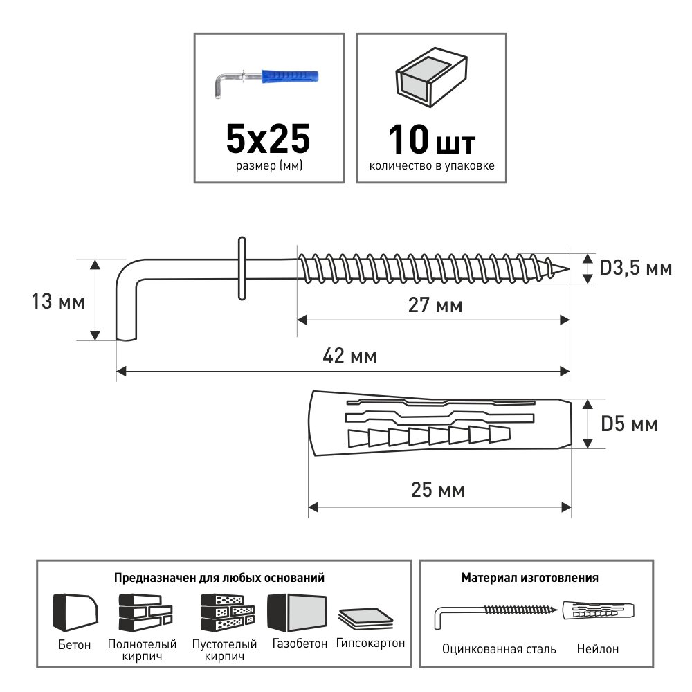 Дюбель универсальный Rawlplug 4ALL 5х25 мм с Г-крюком 3,5х42 мм 12 шт интересное:
