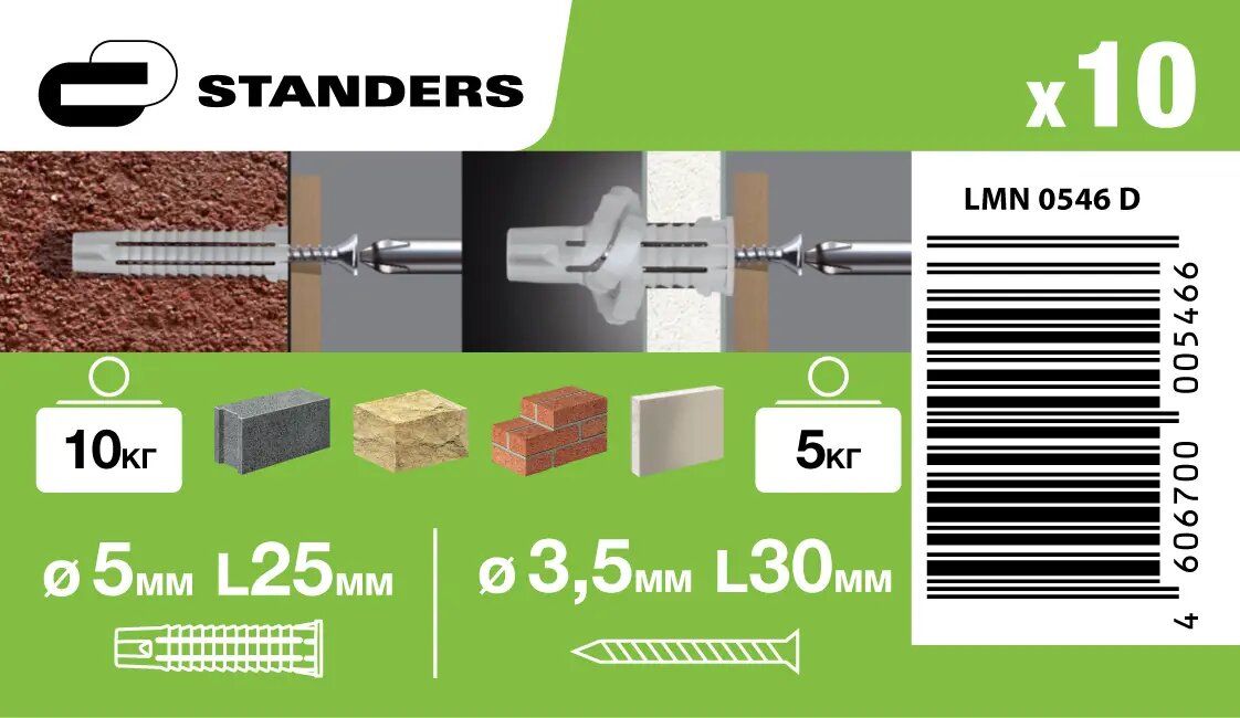 Дюбель потайной Standers PDU N 5x25 мм, с шурупом 3.5x30 мм, нейлон, 10 шт. интересное: