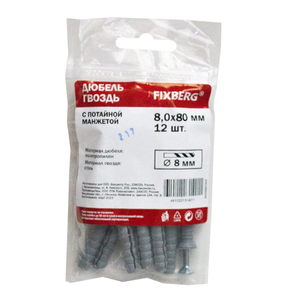 Купить Дюбель-гвоздь с потайной манжетой FIXBERG 8х80 мм 12 шт