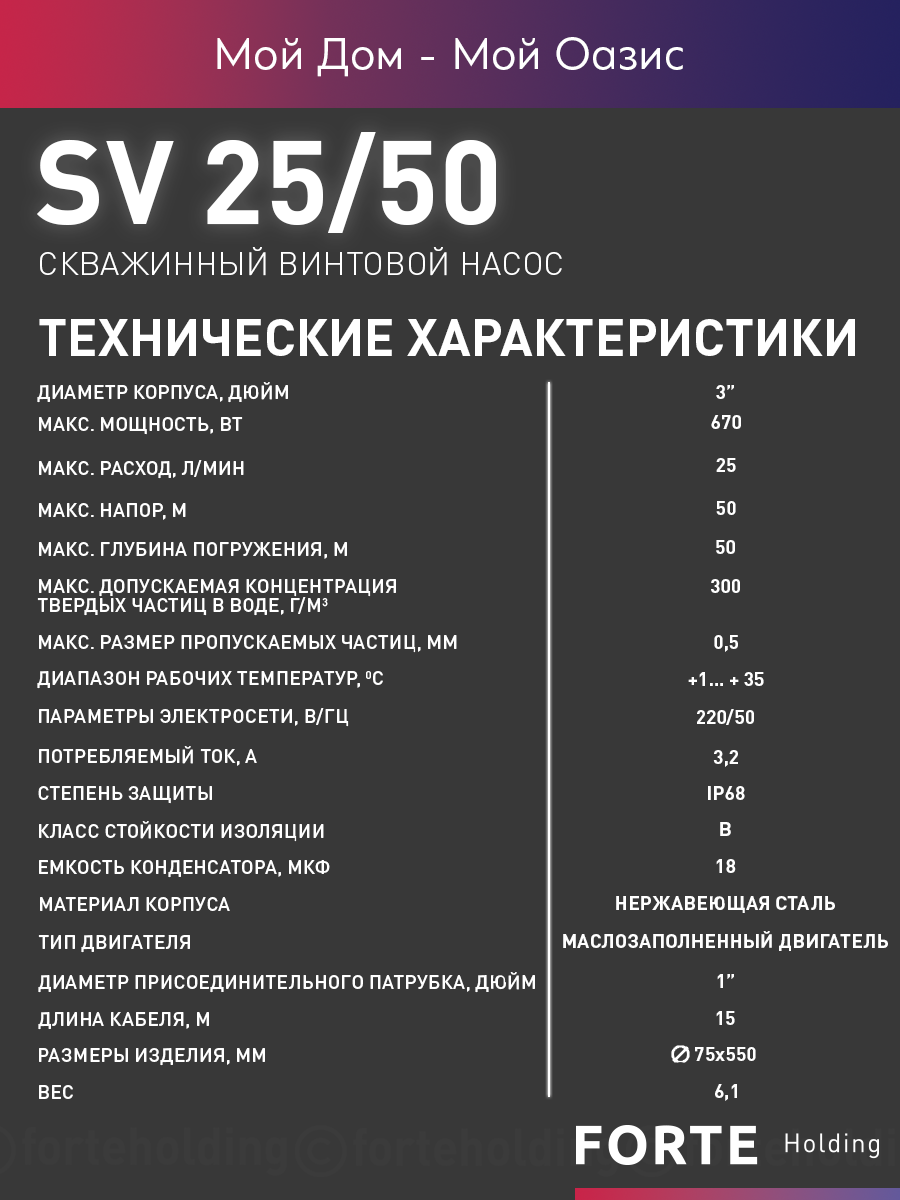 Насос погружной скважинный винтовой для воды водяной Oasis SV 25/50 интересное: