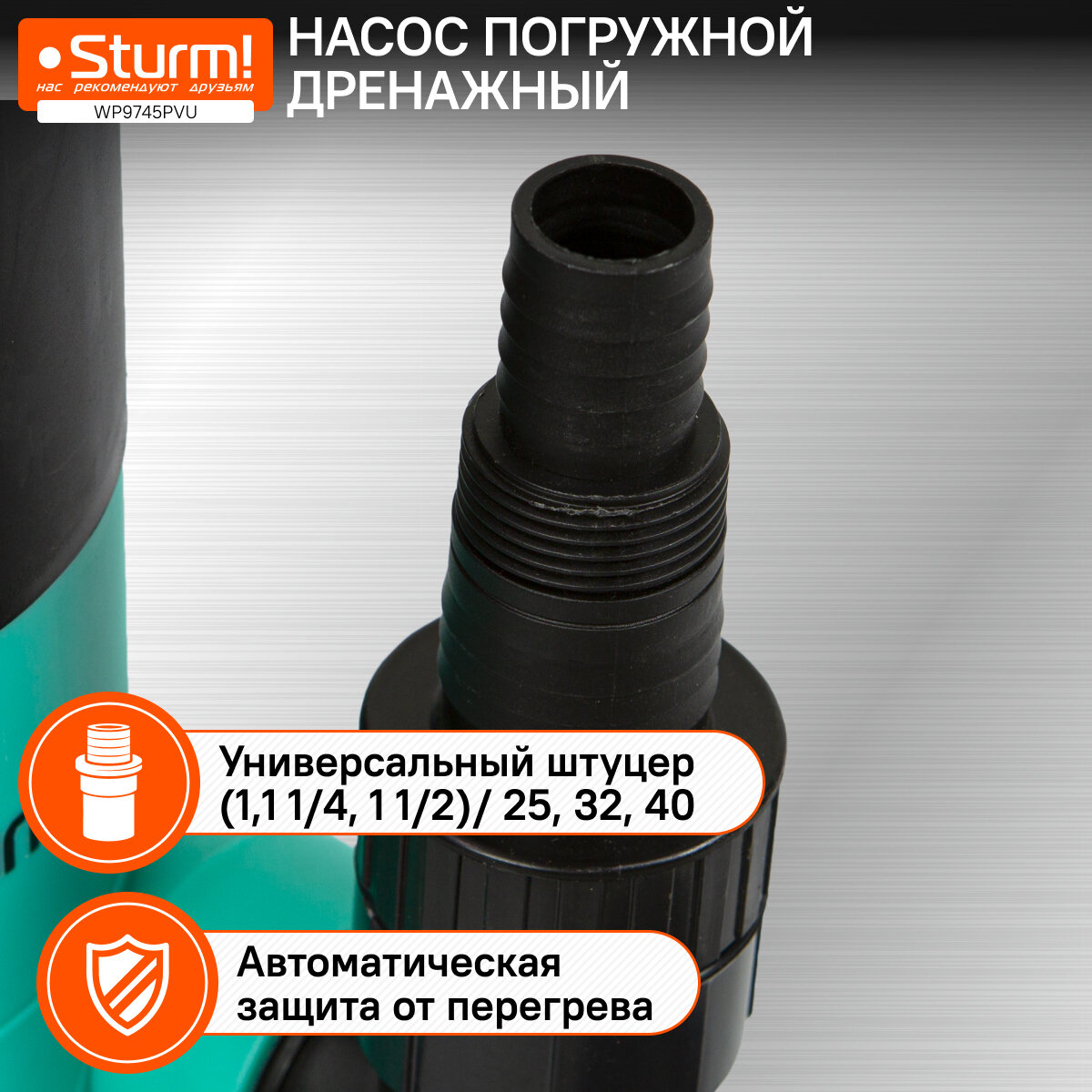 Насос погружной дренажный Sturm! WP9745PVU 3 в 1 450Вт, част. до 30мм, 200л/мин, напор 6м интересное: