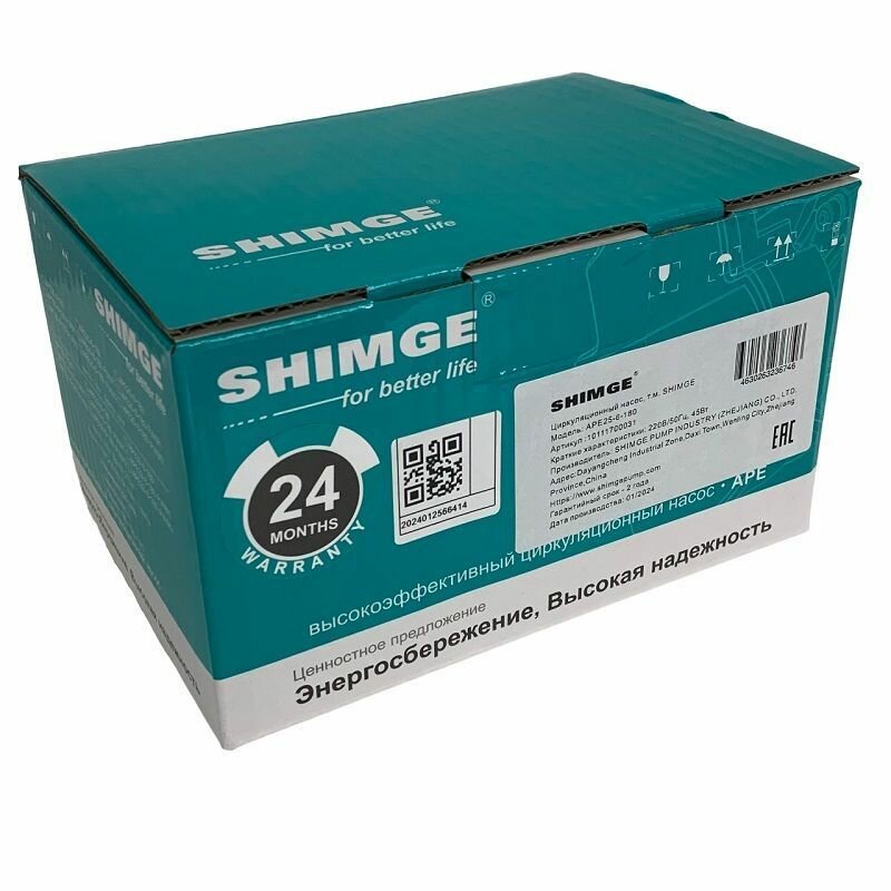 Насос циркуляционный SHIMGE APE 25-6-180 с частотным регулированием (220В; от 3 до 45 Вт; L180), гайки в комплекте интересное: