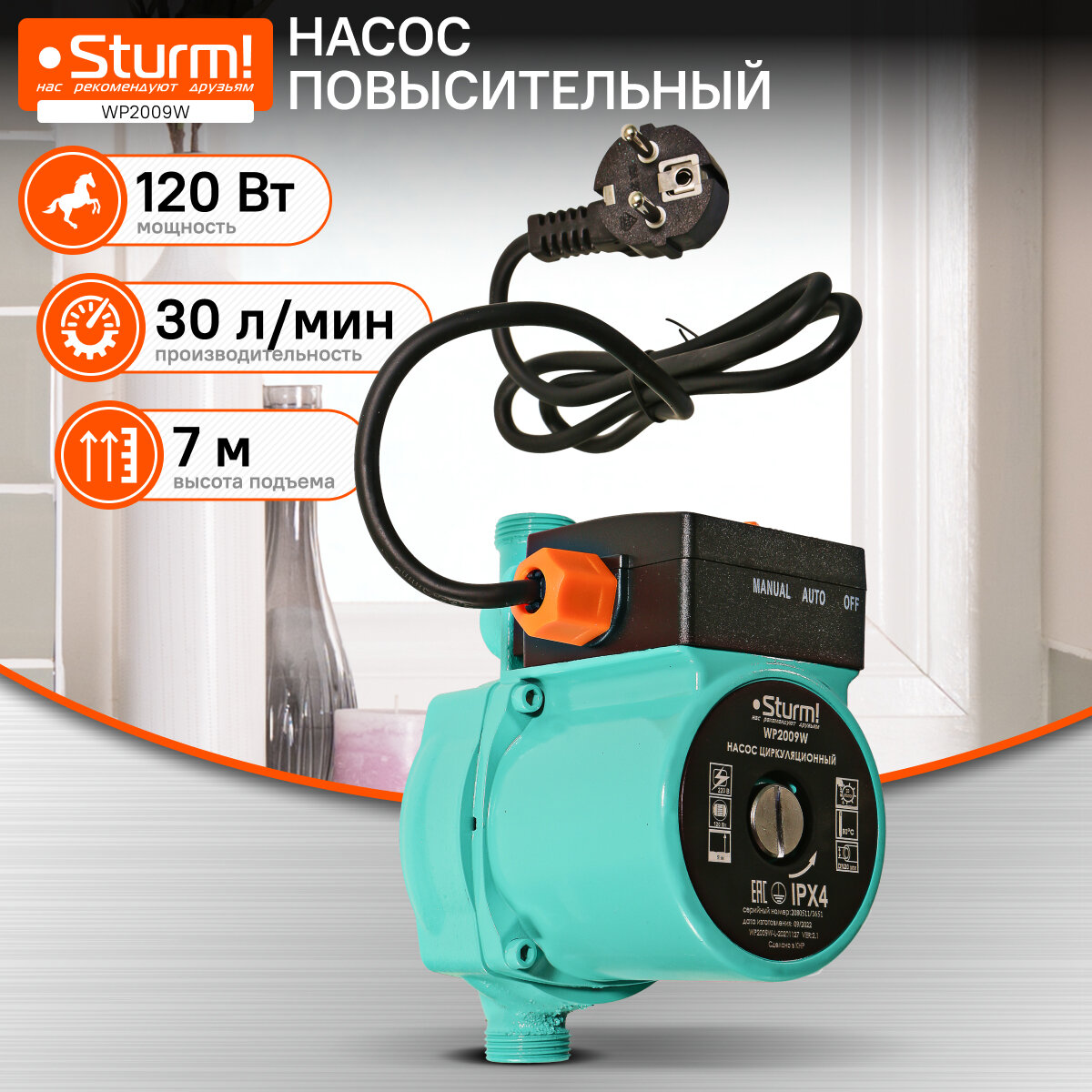 Насос повысительный Sturm! WP2009W 120Вт, 30л/мин, напор 9 метров интересное: