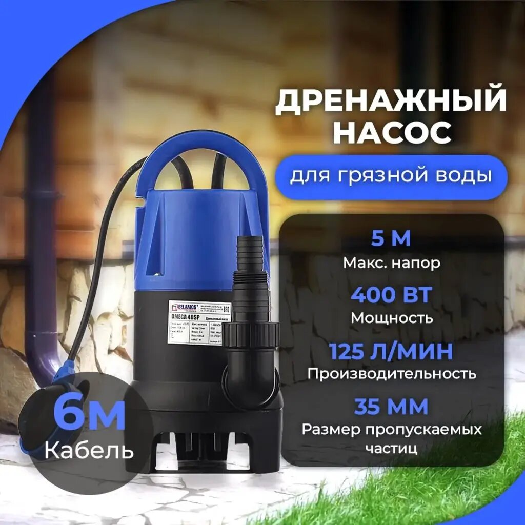Насос дренажный Belamos Omega 40 SP, 125 л/мин, Н-5 м, каб.6 м интересное: