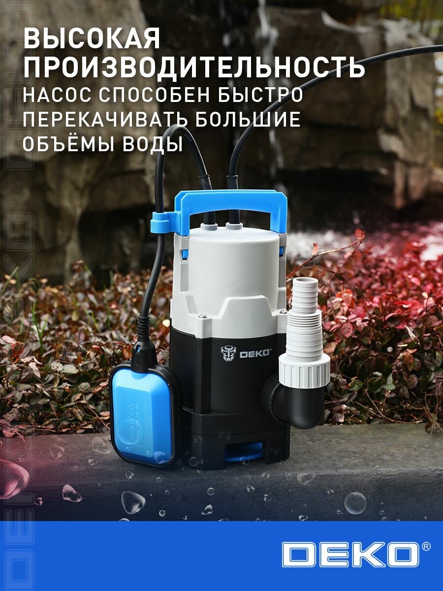 Насос дренажный DEKO DWP-950P PLUS (грязевая, 2 режима, 220В, 950Вт, пластик)