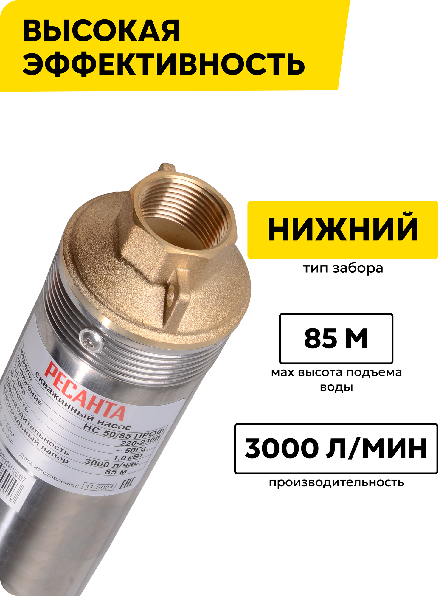Скважинный насос НС 50/85 (d.75 mm, кабель 50 м) Ресанта, центробежный 1000Вт интересное: