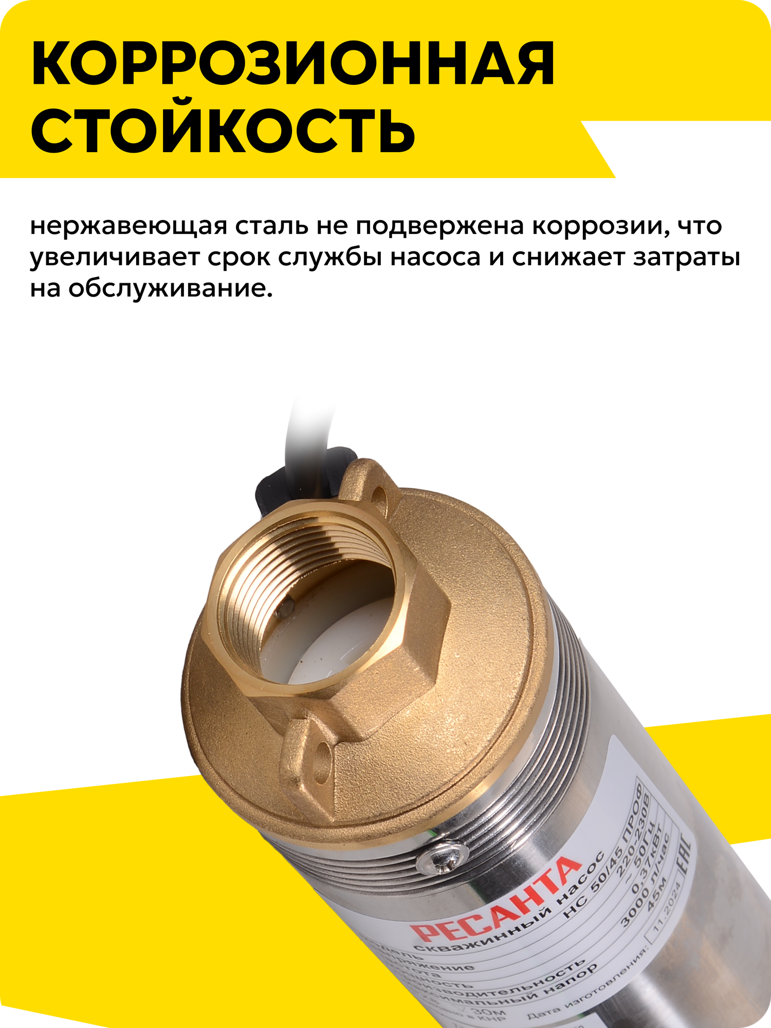 Насос Ресанта НС 50/45, погружной, нержавеющая сталь, IPX8, кабель 20м, 370 Вт интересное: