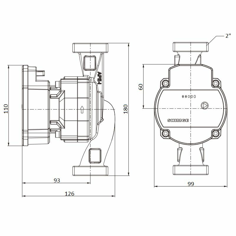 Насос циркуляционный SHIMGE APE 32-8-180 с частотным регулированием (1х220В; от 3 до 65 Вт; L180), гайки в комплекте