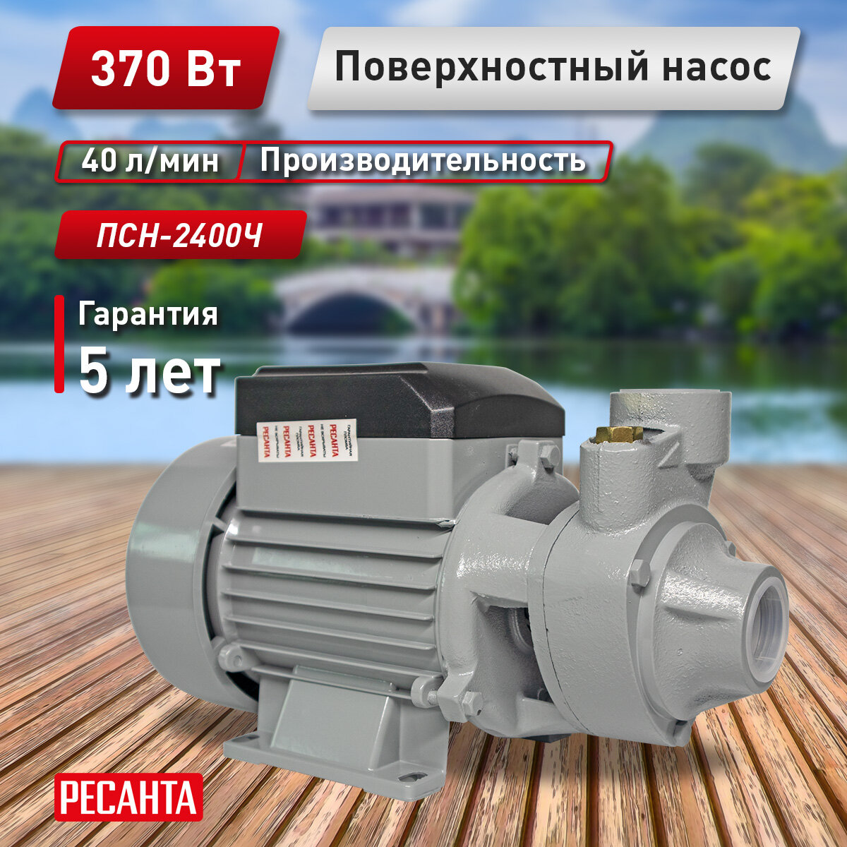 Купить Поверхностный насос Ресанта ПСН-2400Ч, 370 Вт, высота подъема – 30 м, 40 л/мин, G1