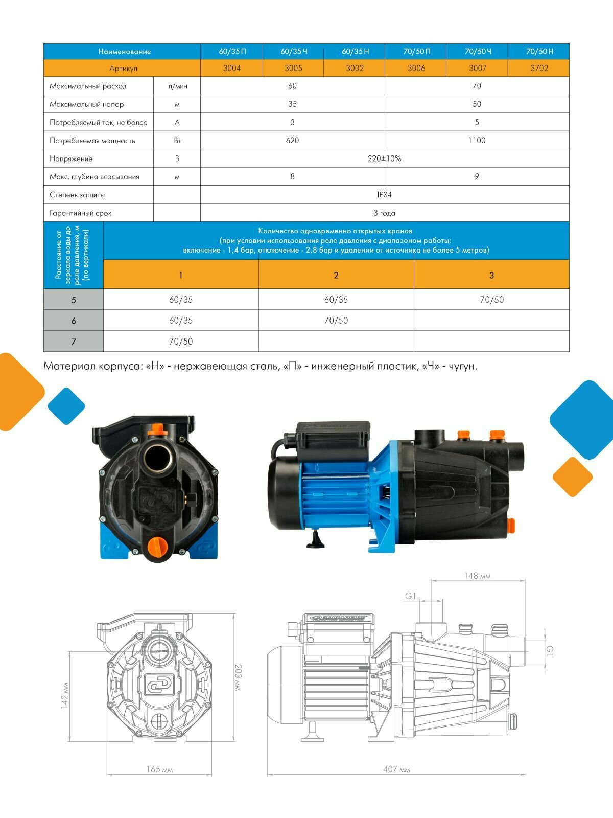 Поверхностный насос Джилекс джамбо 60/35 П 2.0 Q - 60 л/мин H - 35м интересное: