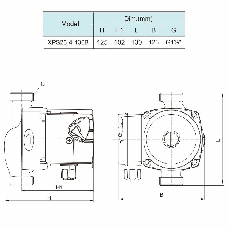 Насос циркуляционный SHIMGE XPS-B 25-6-130 (1х220В; 0,10кВт), с гайками, L130