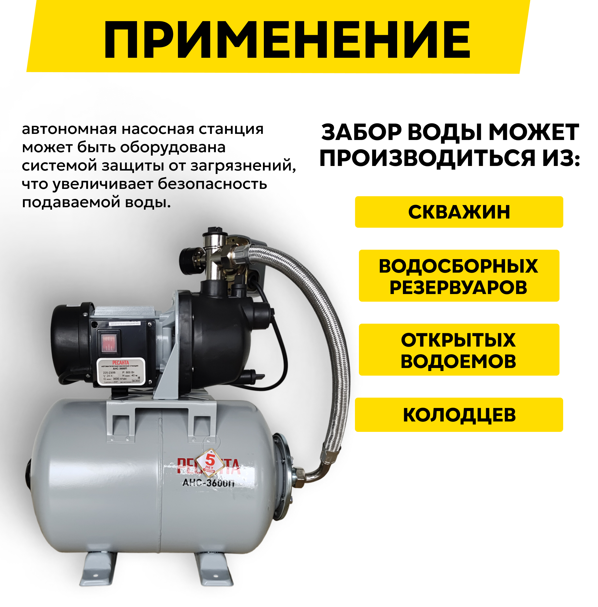 Автономная насосная станция Ресанта АНС-3600П, 800 Вт, напор – 40 м, 60 л/мин, гидроаккумулятор – 24 л интересное: