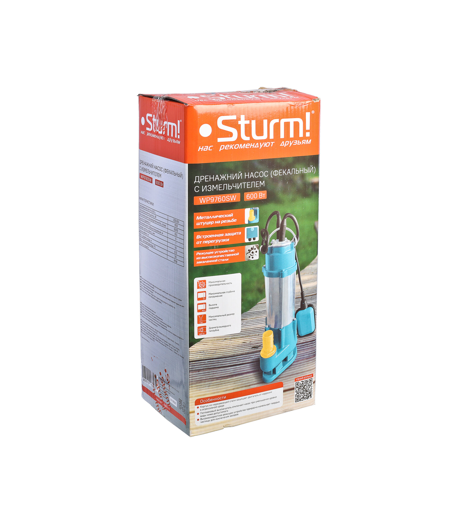 Купить Насос погружной дренажный (фекальный) Sturm! WP9760SW 600Вт, 100л/мин, напор 8,5м, глубина погружения 5м, нож