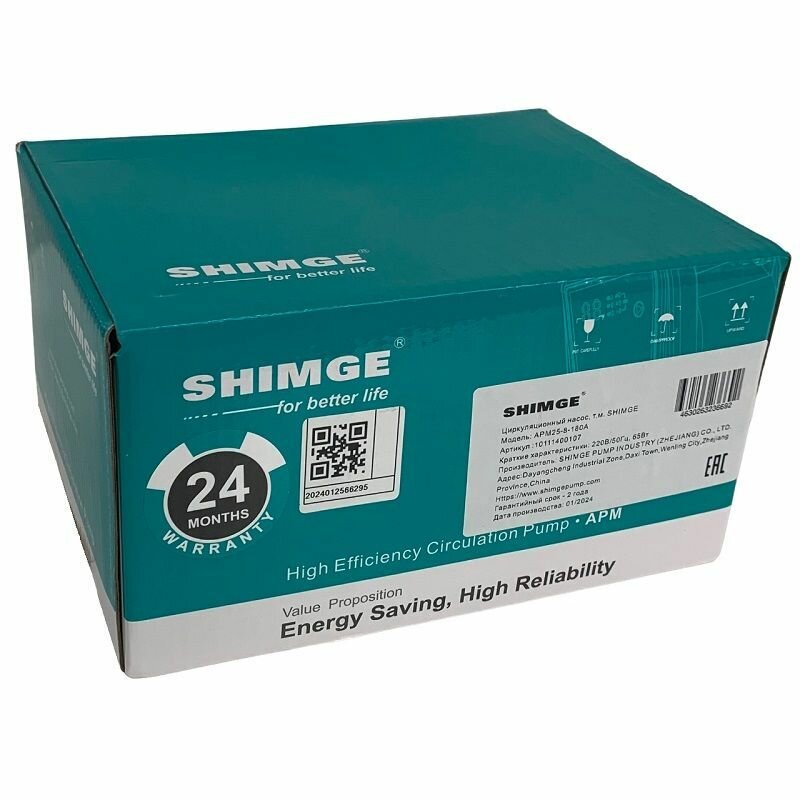 Насос циркуляционный 25-4-180 с частотным распределителем SHIMGE APM-A 25 Вт, 220В, гайки в комплекте