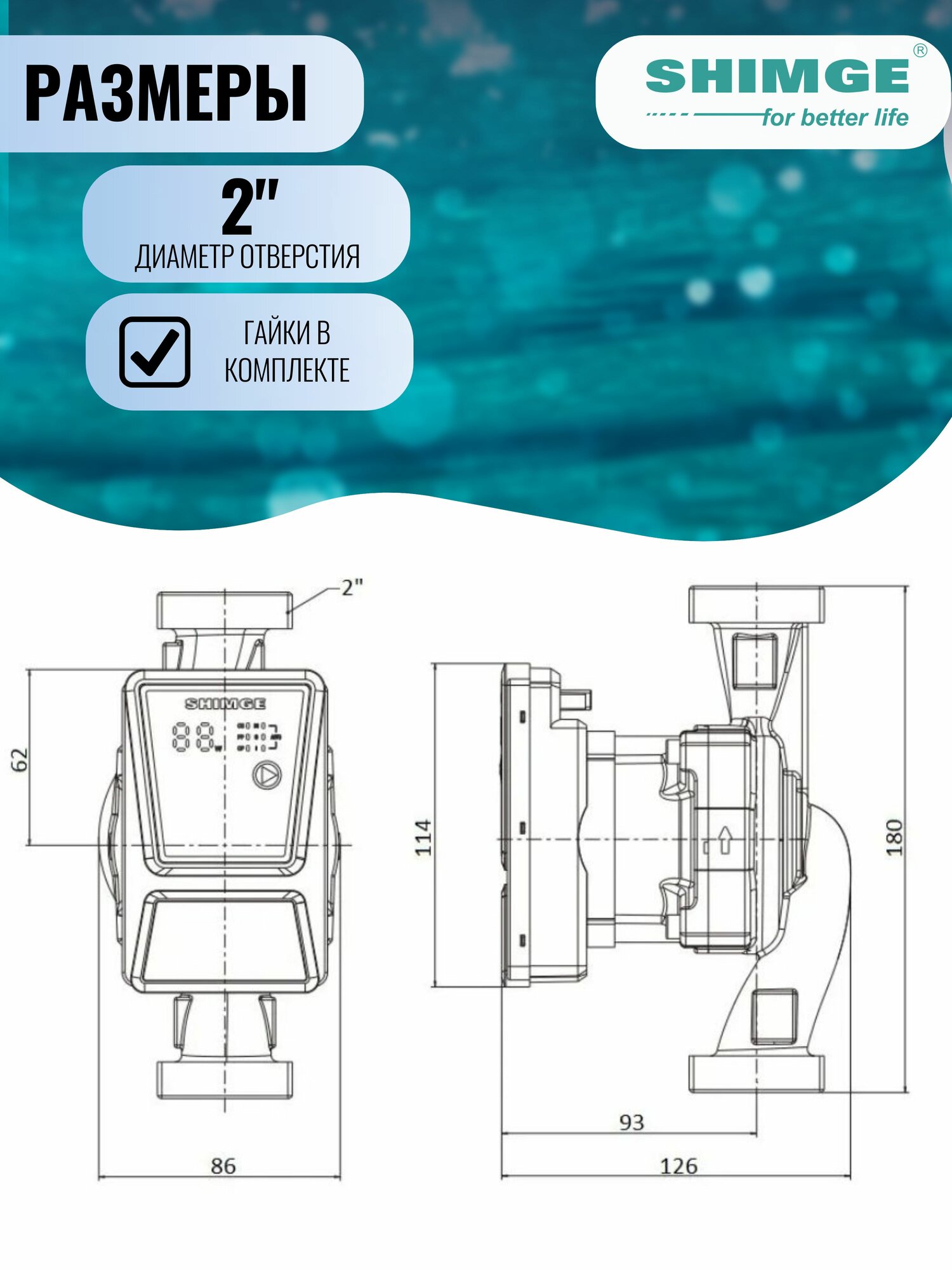 Насос циркуляционный 32-8-180 с частотным распределителем SHIMGE APM-A 90 Вт, 220В, гайки в комплекте