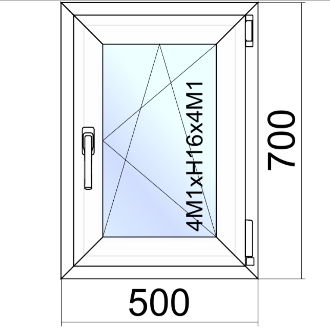 Купить Окно ПВХ КВЕ Гутверк/ ш.50см*в.70см/поворотно-откидное/правое/однокамерный стеклопакет/фурнитура Vorne (Турция)