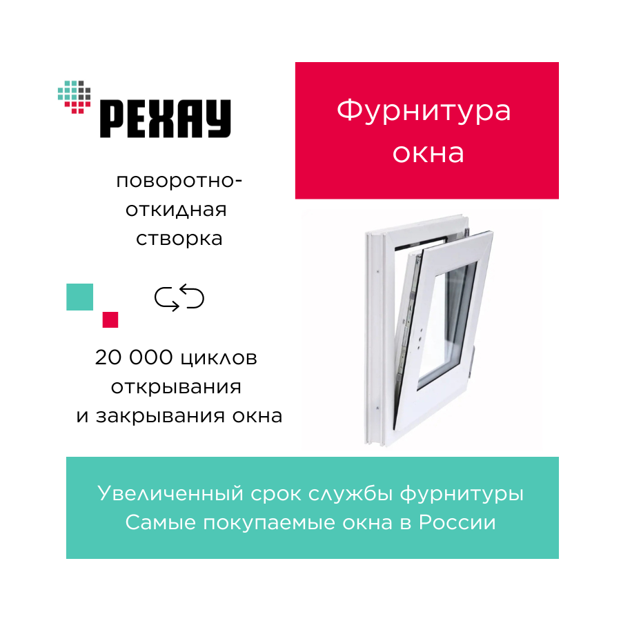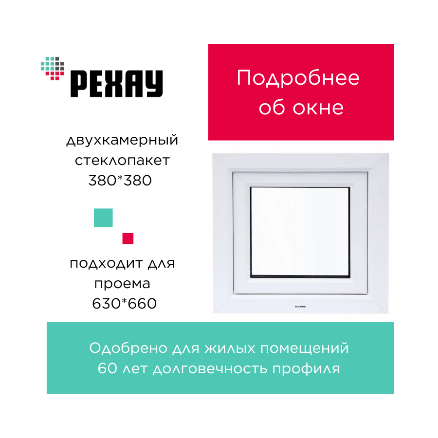 Окно пластиковое ПВХ 600х600 мм, РЕХАУ, правое, поворотно-откидное, интересное: