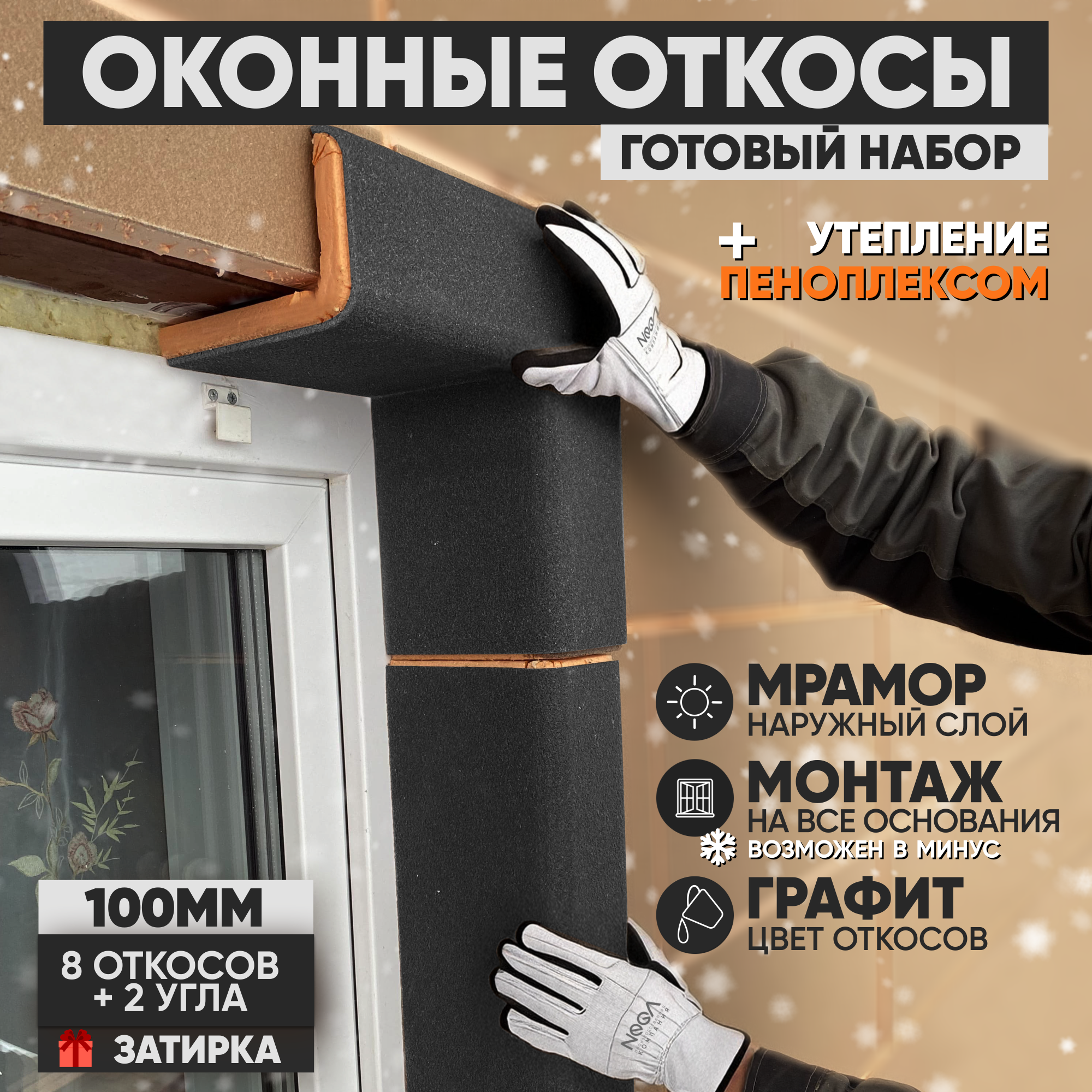 Оконные Откосы Утепленные, Фасадные, Набор на окно (с углами), цвет Графит, 8 откосов + 2 угла, глубина 100 мм интересное: