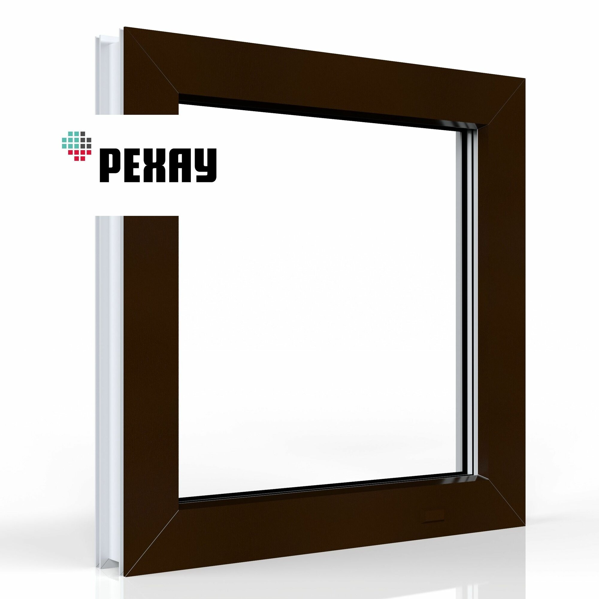 Пластиковое окно ПВХ РЕХАУ BLITZ 800х800 мм (ВхШ), глухое, двухкамерный стеклопакет, шоколадно-коричневый снаружи