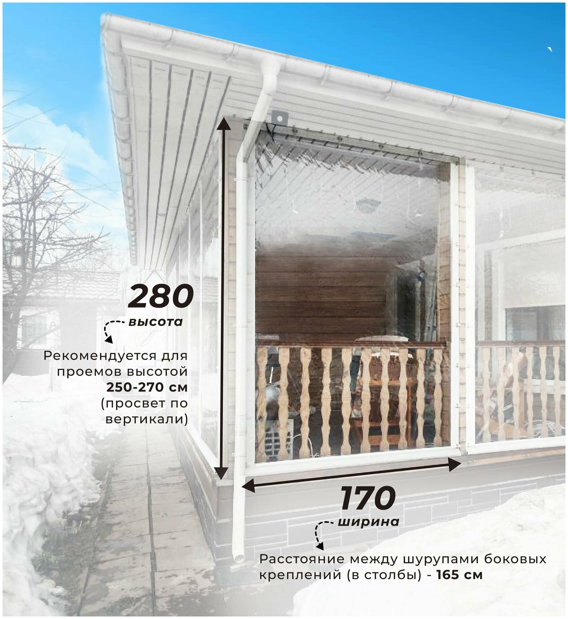 Мягкое окно ПВХ 280х170 см для веранды, цвет окантовки белый интересное: