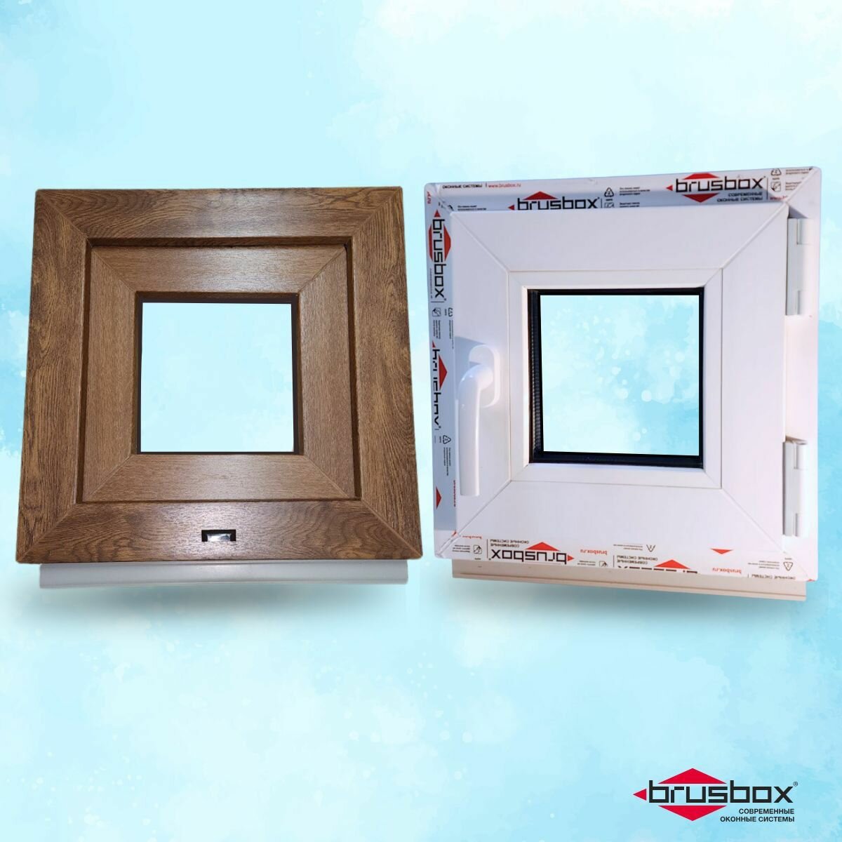 Окно пластиковое 500х500 мм Золотой дуб поворотно-откидное одностворчатое правое профиль 60 двойной стеклопакет 3 стекла