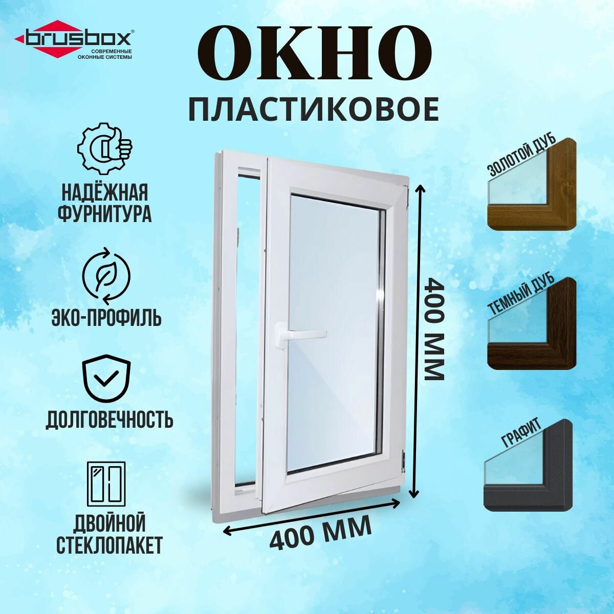 СохранитьОкно пластиковое 400х400 мм Темный дуб поворотное одностворчатое правое профиль 60 двойной стеклопакет 3 стекла интересное: