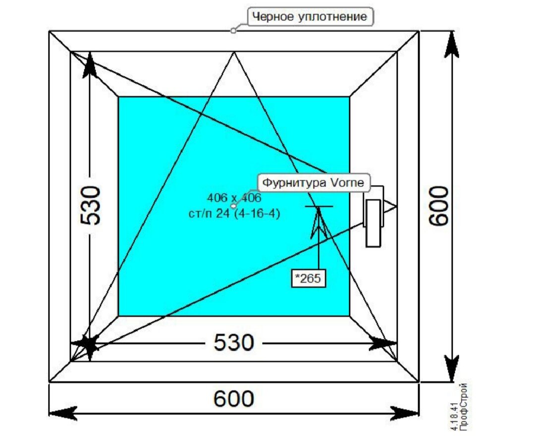 Глухое окно VEKA WHS 60 (600ш х 600в) однокамерное