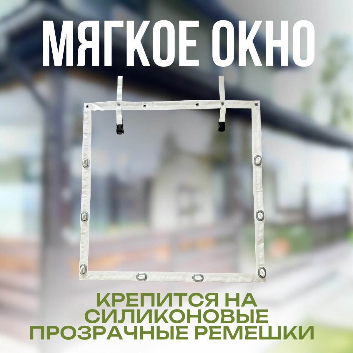 Мягкое окно с креплением на пластиковой поворотной скобе (Белая окантовка) 120х115 см