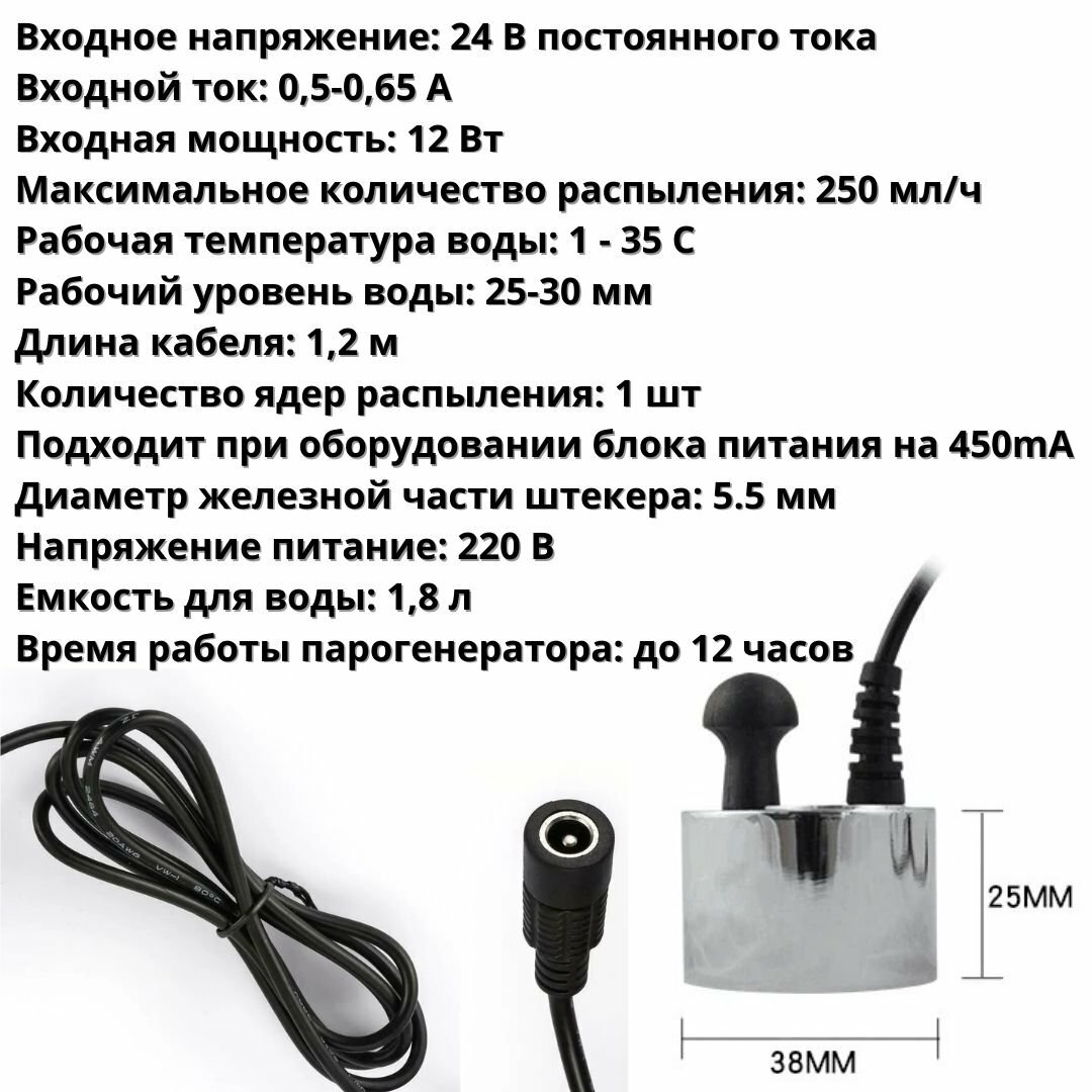 3D Парогенератор RM-1220 DC24V 500mA для электрокаминов RealFlame, разъем гнездо 5,5 х 2,5 мм интересное: