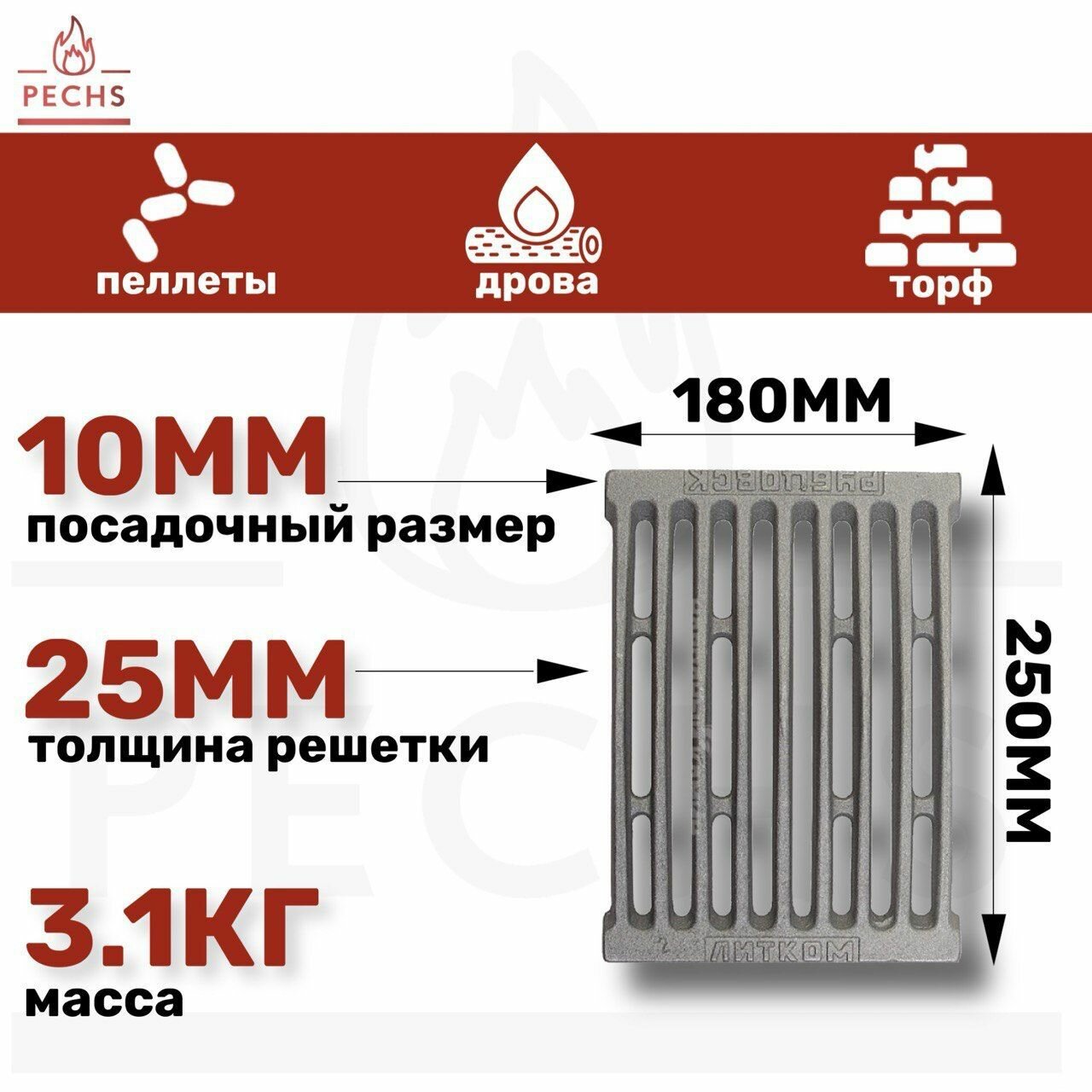 Колосник для печи чугунный Рубцовский литейный завод РД-3 250х180, решетка чугунная колосниковая для печи, в баню и сауну, печное литье интересное: