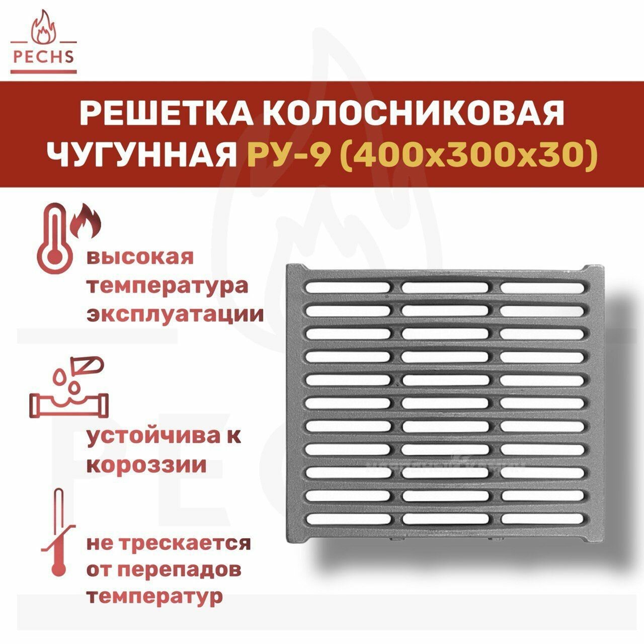 Колосник для печи чугунный Рубцовский литейный завод РУ-9 400х300, решетка чугунная колосниковая для печи, в баню и сауну, печное литье интересное: