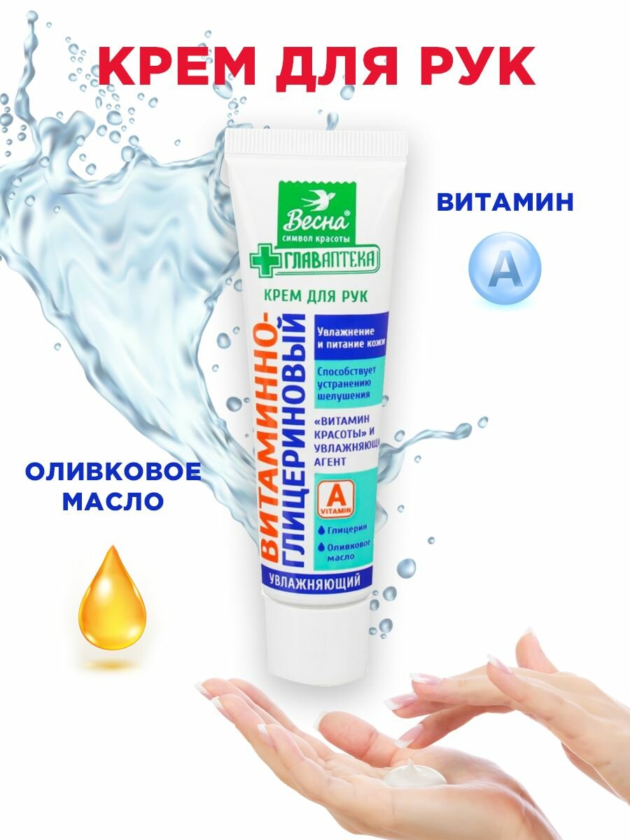 Весна Крем для рук Главаптека, Витаминно-глицериновый, 45 мл, 6 штук