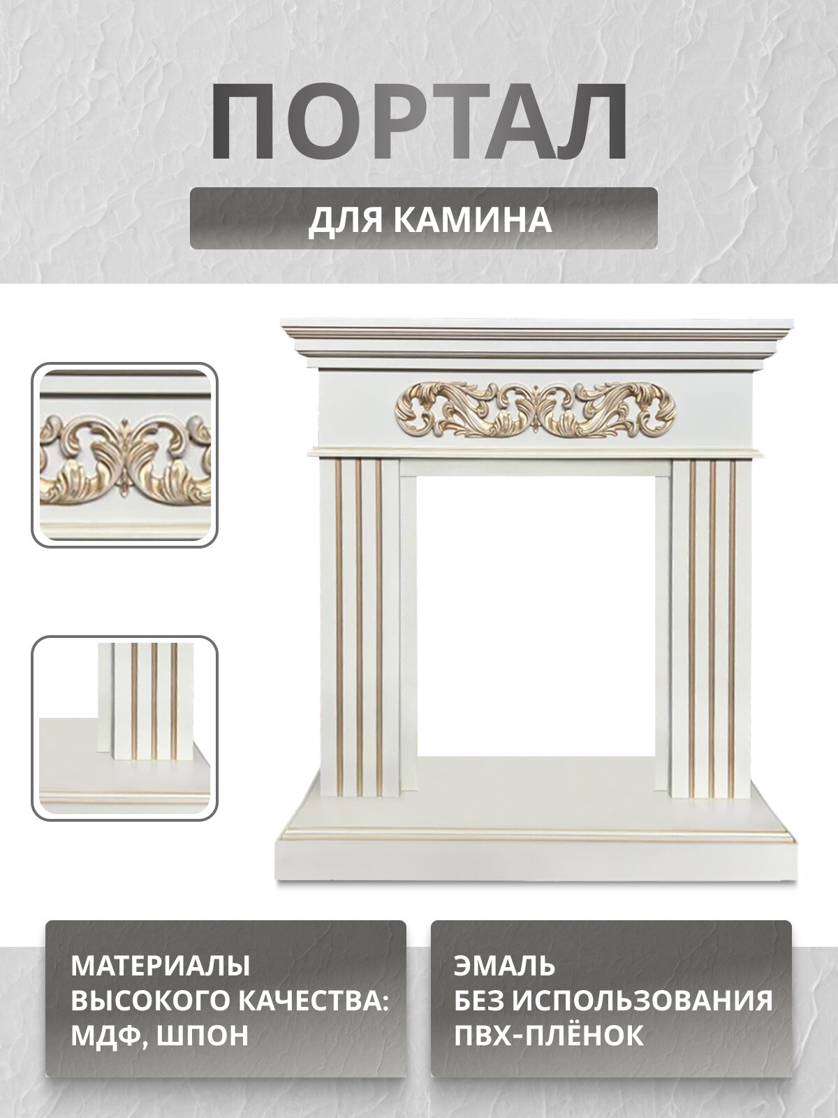 Портал для камина Bern BG слоновая кость с золотой патиной, каминный портал, без электрического очага интересное: