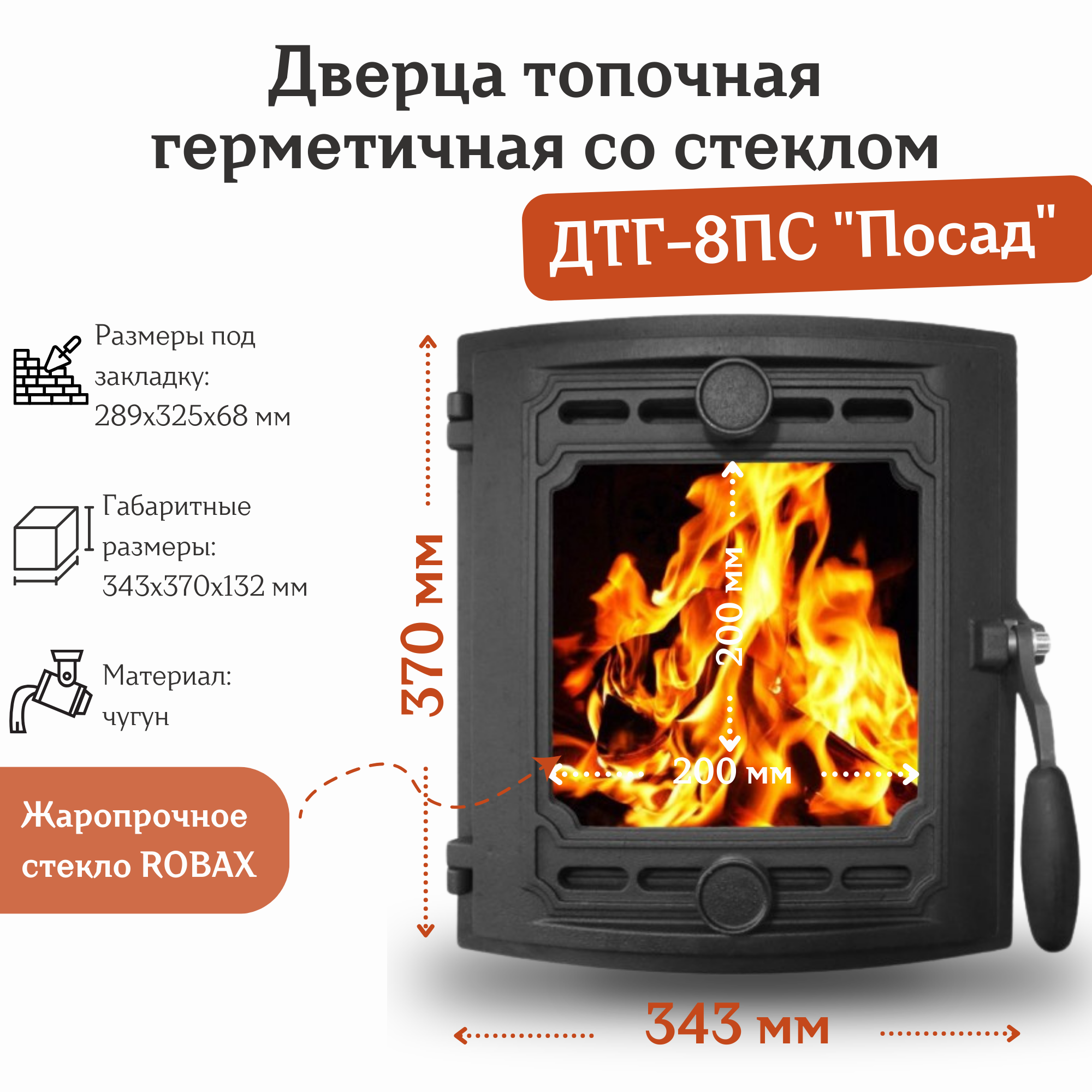 Дверца топочная герметичная со стеклом ДТГ-8ПС "Посад" (343х370х132 мм) интересное: