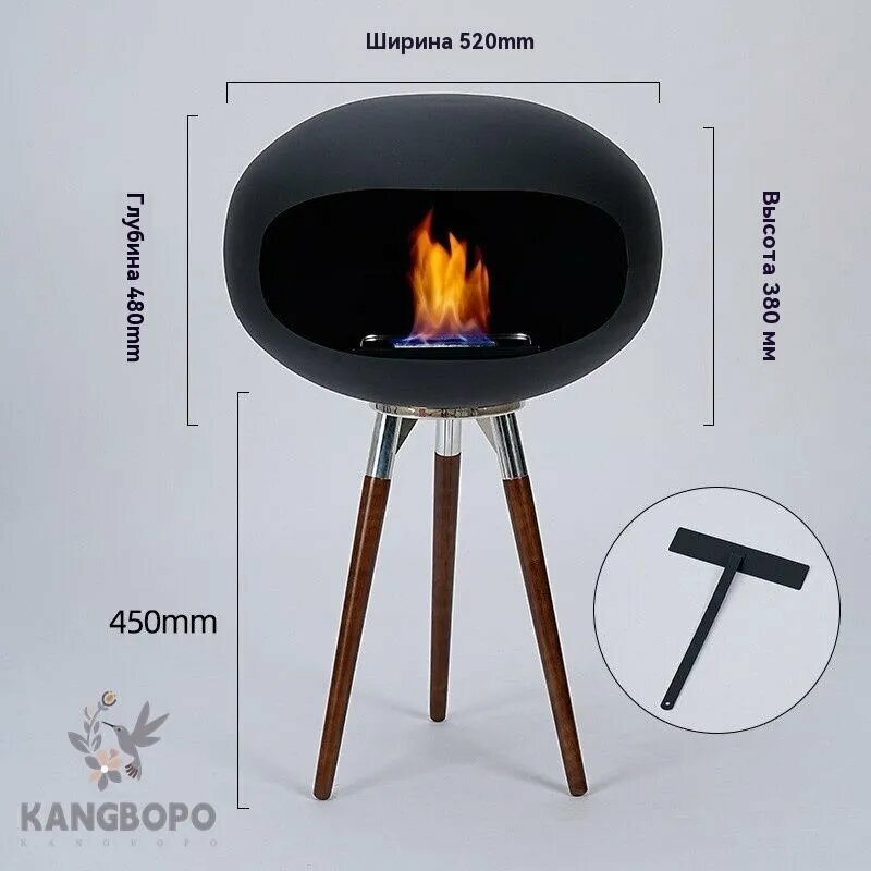 Биокамин, металл, черный, напольная установка, 45 см x 52 см x 48 см