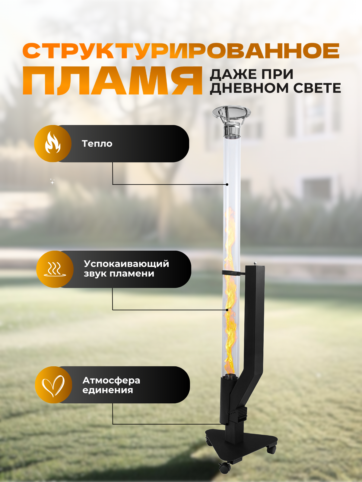 Напольный биокамин уличный, высота 195 см интересное: