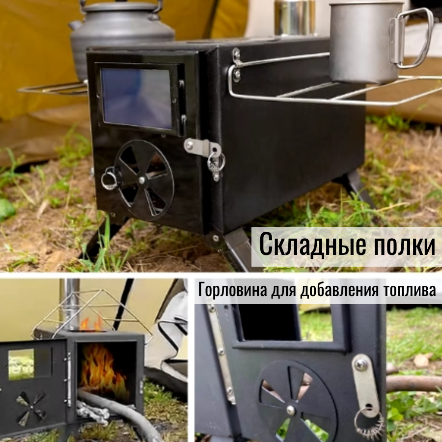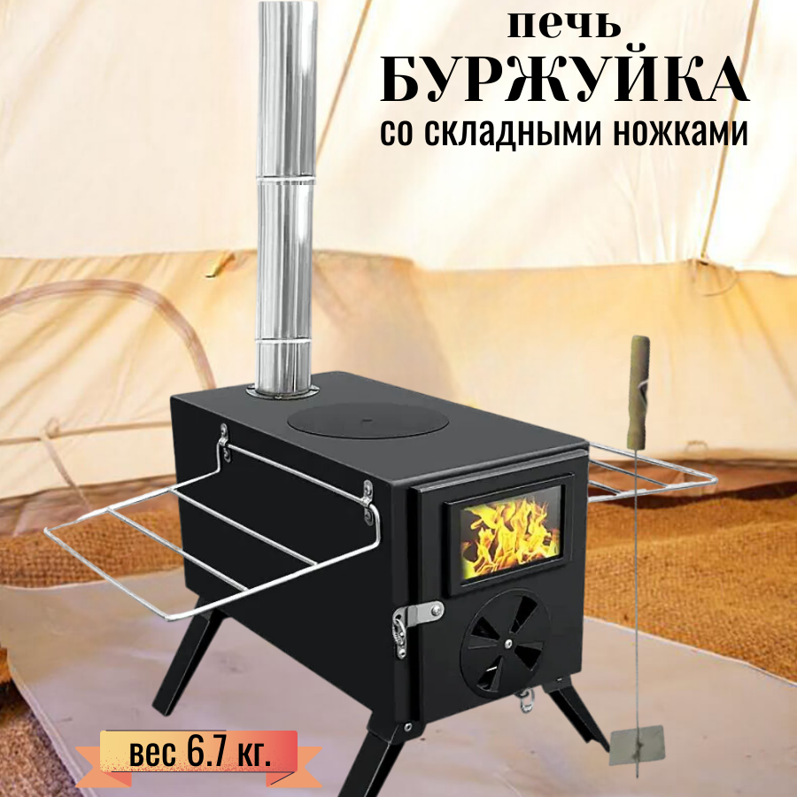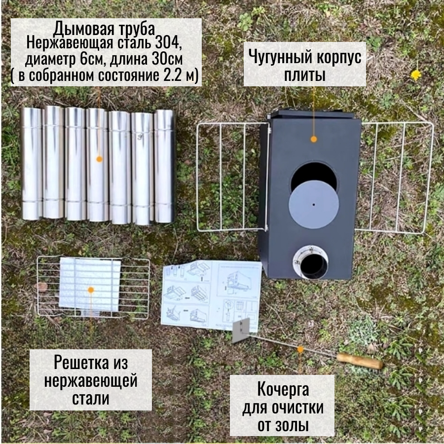 Печь отопительная Буржуйка с дымоходом Homzon /чугун / 29*30*39 см интересное: